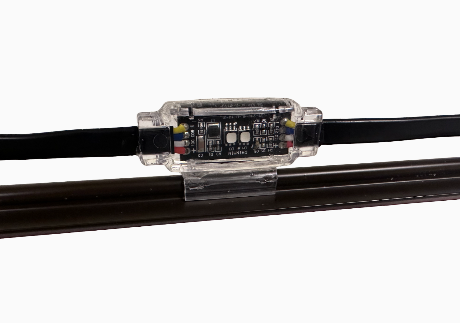 This 360º Minleon pebble with clips has 2 diodes on the front and back of the pebble (4 diodes total). The molded clip is designed to clip onto a quarter round bead, or the Minleon base bracket which the track would normally clip onto. No track is needed to install this bulb. This is great for commercial buildings where you can mount the bracket onto the top of the drip edge and clip the bulbs directly onto the bracket above the drip edge. These are 4-wire 24 volt color changing RGB pebbles.