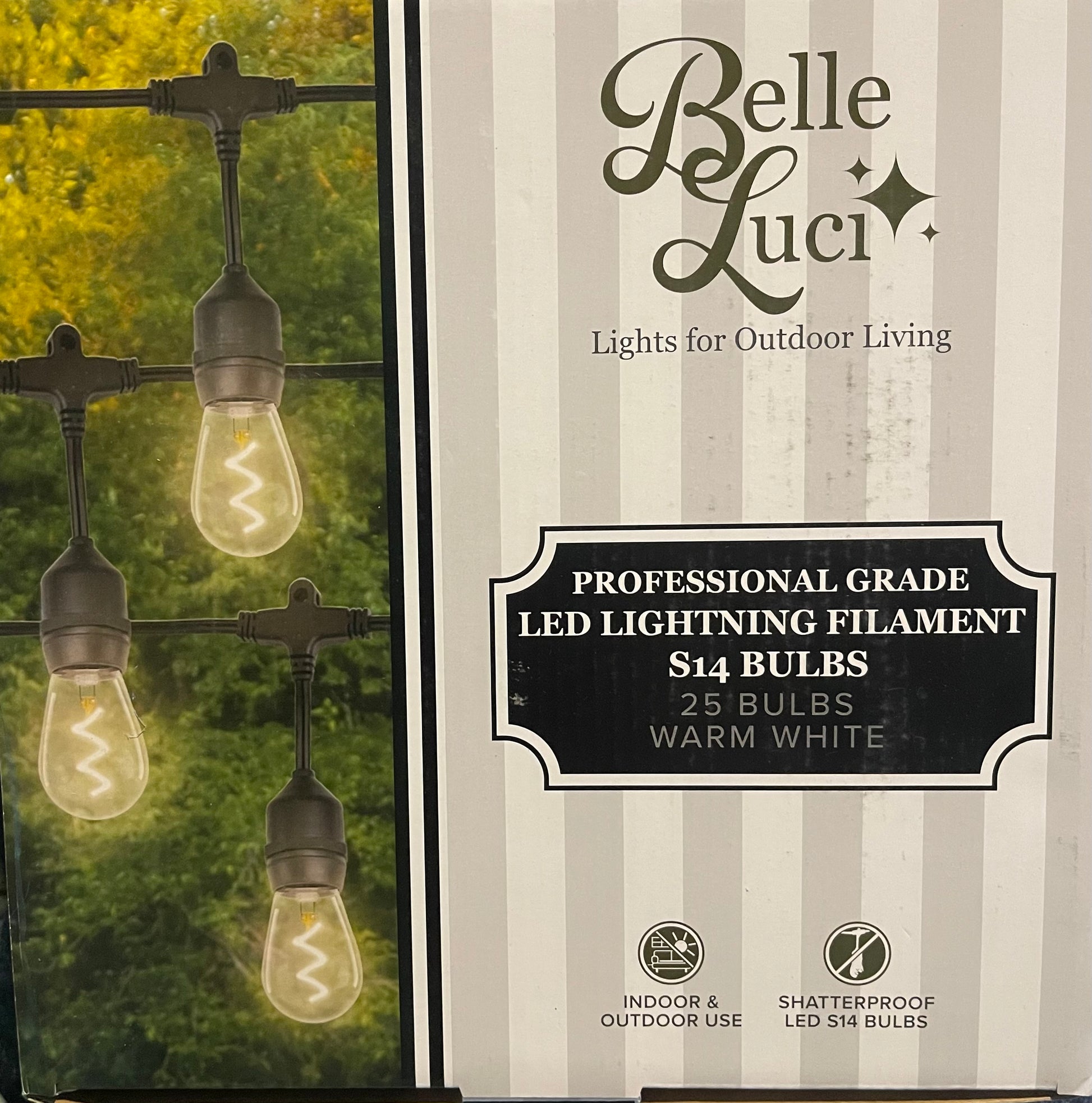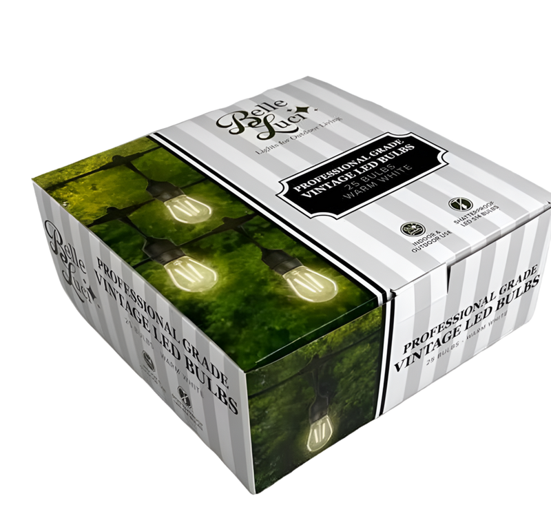 Crafted with a tough plastic shell for extreme durability, these S14 warm white bulbs are built to last in any outdoor setting. Designed with a standard E26 base, they fit most fixtures for quick and easy installation—perfect for refreshing your patio or bistro lighting. Each box includes 25 double filament or lightning-style bulbs, making them a cost-effective solution for large-scale outdoor lighting projects.