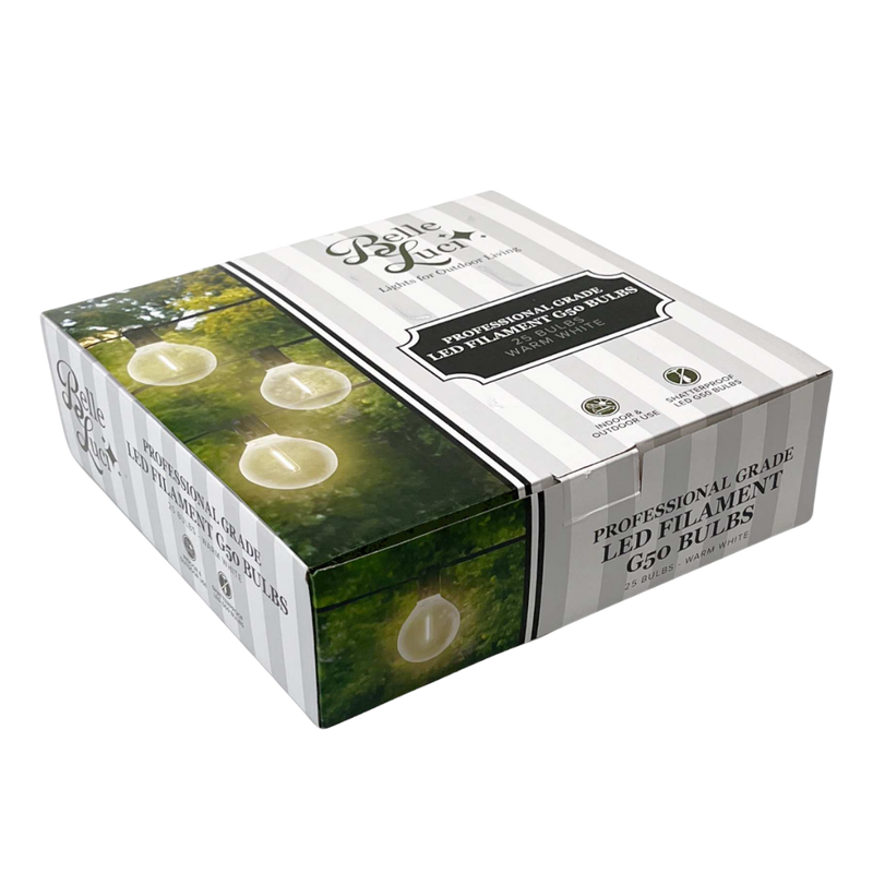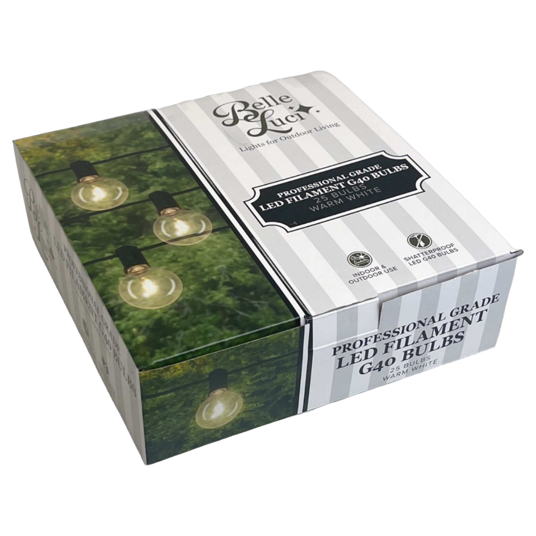 - Sold in a box of 25, the G40 and G50 bulbs are a cost-effective solution for large patio and outdoor lighting installations