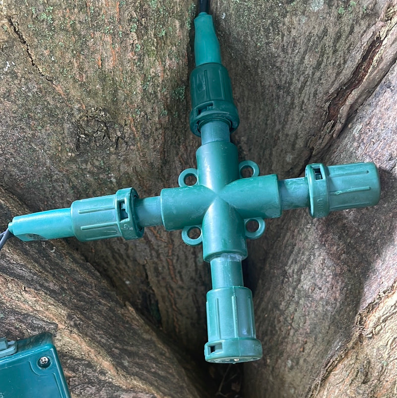 Install these splitters where trees branch in different directions to get multiple runs from single strand.