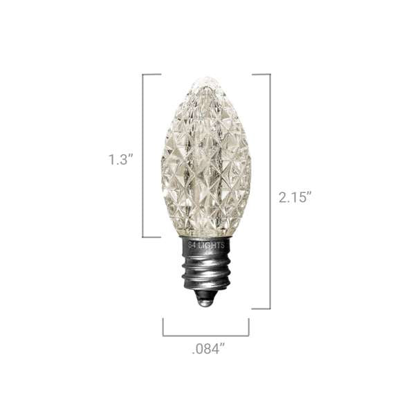 Cut, Color, Clarity, Certification, not to mention un-Crushable. These faceted LED bulbs act like prisms to refract the light in a classic C7 shape. Each bulb is made ensuring each semi-solid bulb has even, color-correct shine. The classic warm white color
