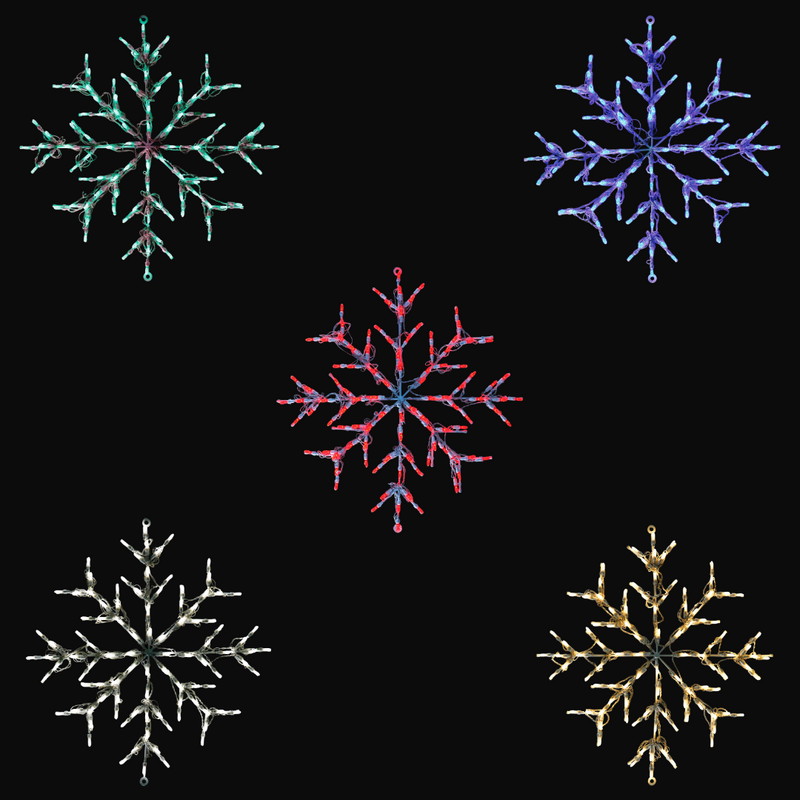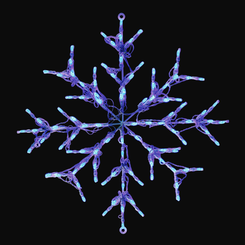 Each snowflake includes 100 intensely bright, crisp LED mini lights that use less electricity than traditional incandescent bulbs. Operating on low voltage, it's an energy-efficient choice ideal for large spaces and the sides of commercial buildings. Known for exceptional quality and longevity, HBL delivers a reliable and eye-catching holiday display piece with this snowflake design.