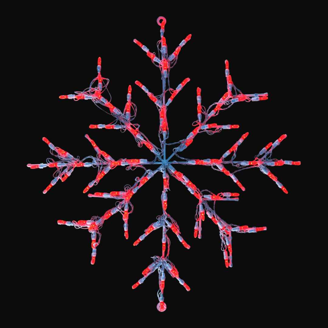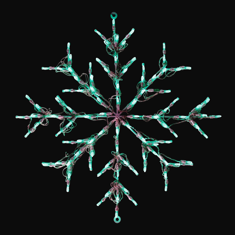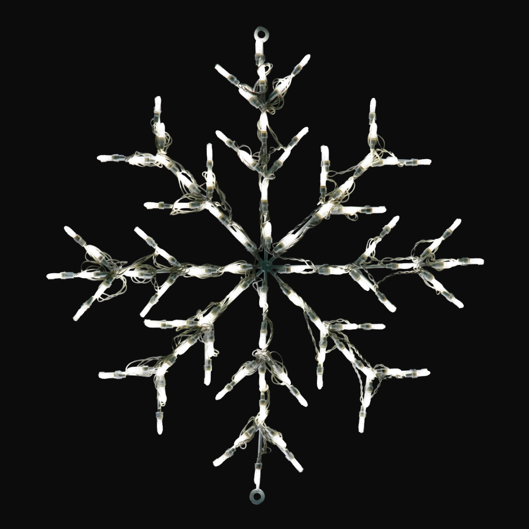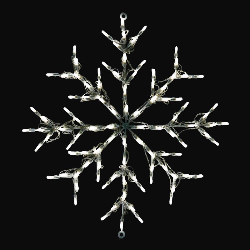 This versatile 30" metal wire snowflake is perfect for decorating trees, walls, or virtually any display area. An open eyelet at the top allows for easy hanging from suspended spaces. Built on a durable steel frame, this commercial-grade showpiece is designed for outdoor use and can withstand the elements.