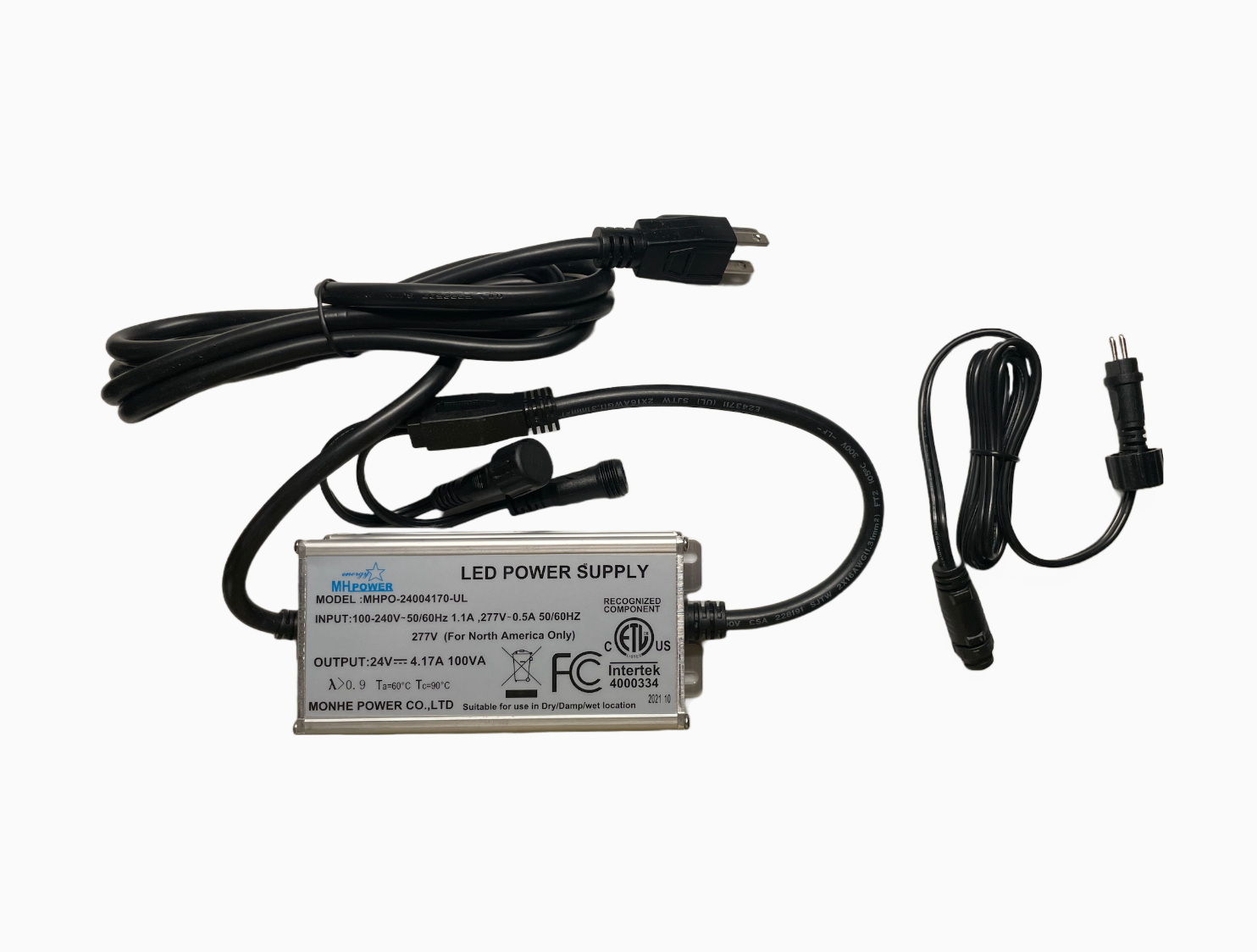 24 volt 4.17 amp power supply to power RGB & RGBW lighting systems for Minleon. This can be used to supply power to one of the Minleon controllers, or you can use it in conjunction with a power T to inject power into a run of lights to extend the amount of lights which can be controlled by an additional 200 RGBW lights from the point of the power T.