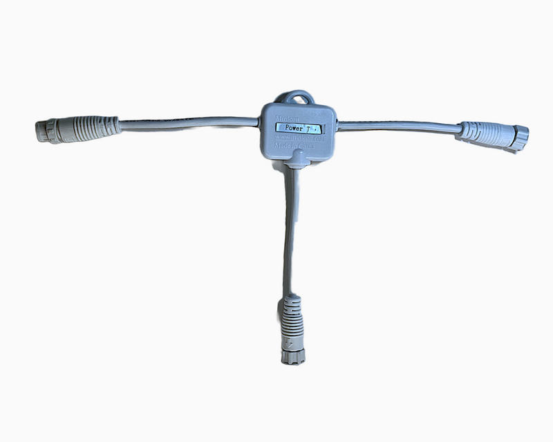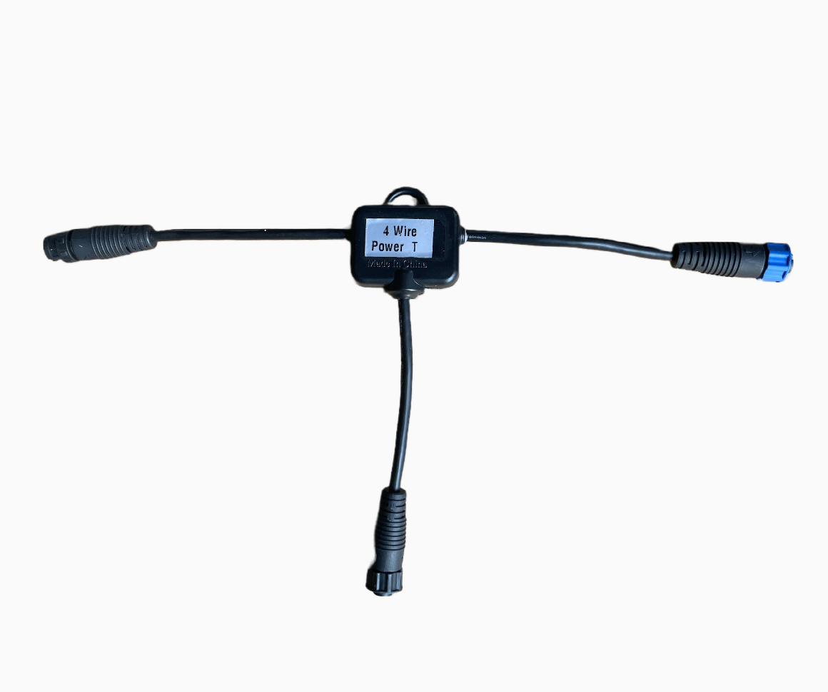 A Power-T is required when building an install which has a single run longer than 200 lights.  The signal gets weak after 200 lights, so to add additional lights to the run, you will need to inject power.  This T will have a female and male 4-pin plug to connect directly in line with your light run.  The third leg is a 3-pin female plug which connects to an additional power supply to inject the power into the light run.  From this point on on, you can add an additional 200 lights to the system for a total of up to 400 lights controlled by a single controller.
