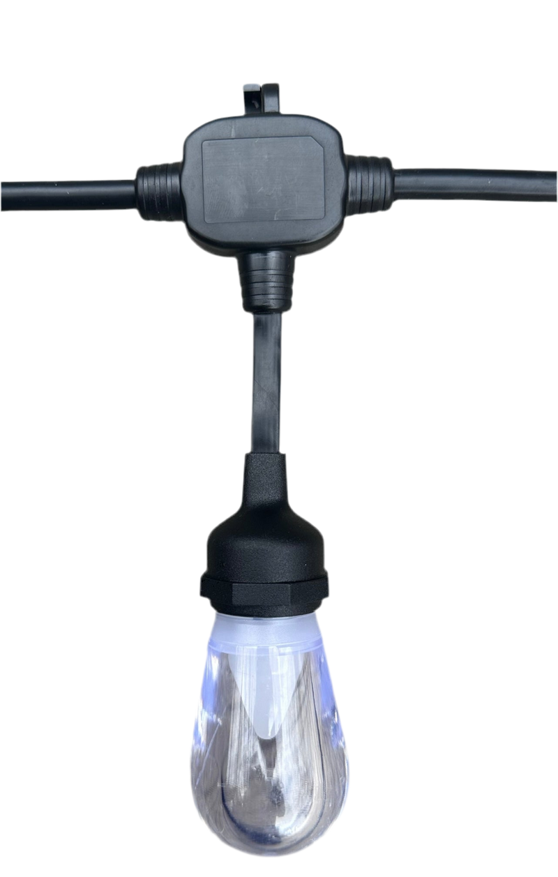 Experience the latest in lighting technology with our NEW 2025 4-wire RGBW Bistro/Festoon lighting. Available in five convenient lengths, these lights feature twist-lock connectors, eliminating the need for cutting or splicing. The advanced RGBW+2 chipset includes a dedicated white diode for a flawless 3000K warm white glow. Enhance your outdoor oasis or event with vibrant, color-changing illumination.