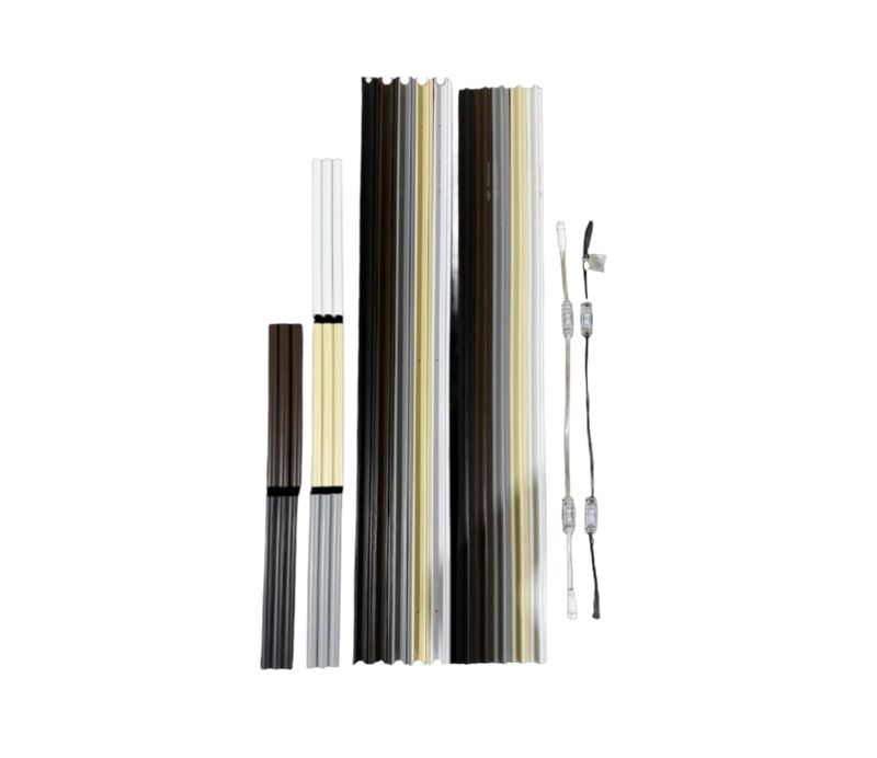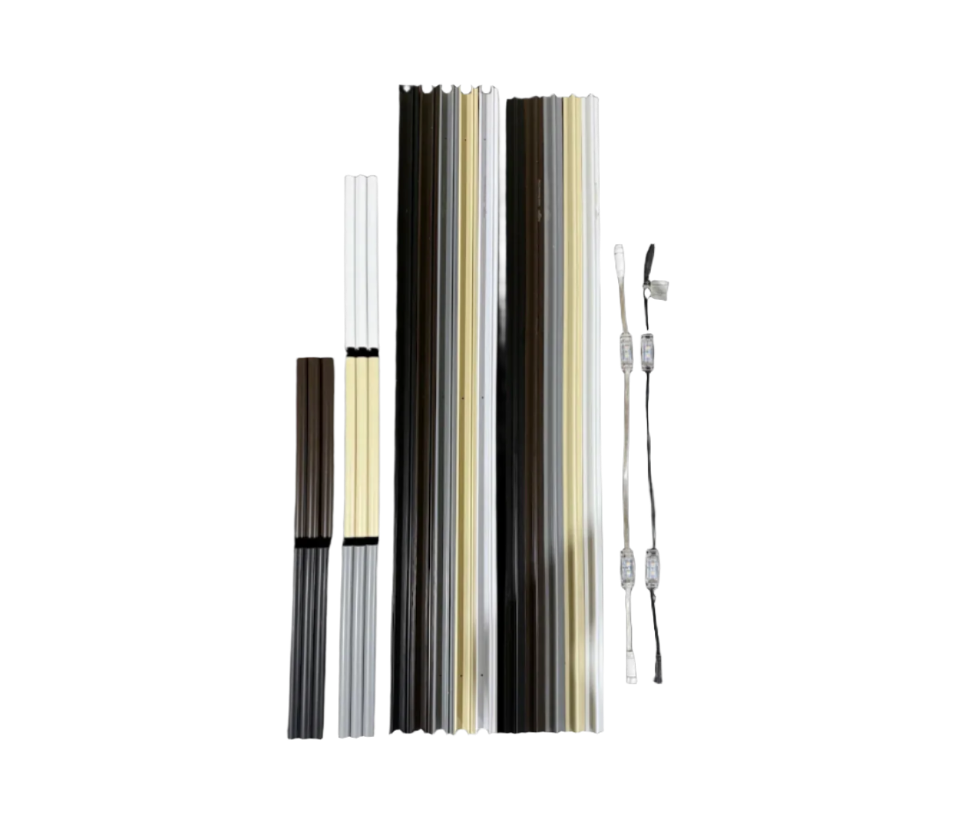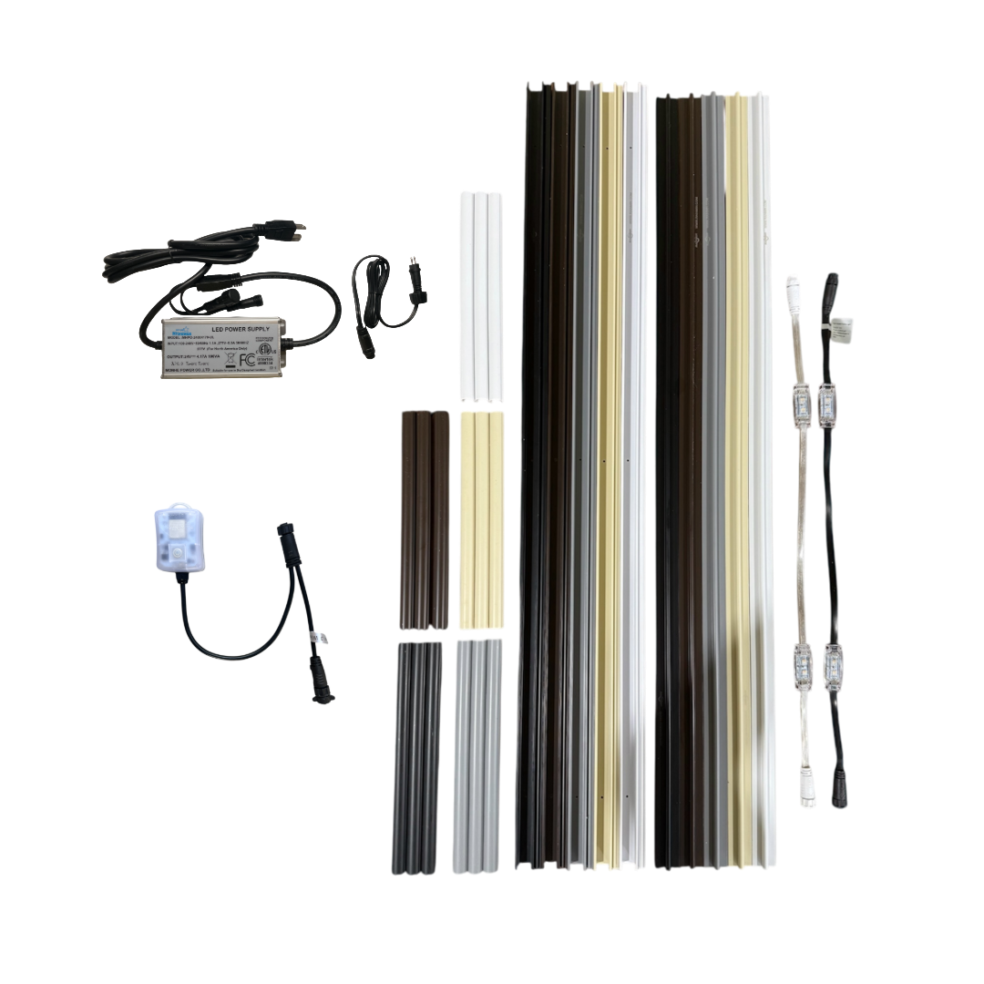 This sample kit was created to provide a sample for the materials used in the Minleon permanent lighting system. Included in the kit is a collection of all colors of track, base, and covers in addition to a sample of clear and black RGBW pebble lights. For an operational same, select the option with power supply and controller.