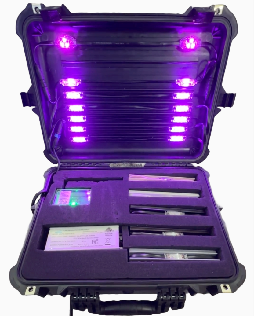 Step your sales game up with our RGB lighting demo kit, elegantly showcased in a sleek rugged briefcase. Simply open the case, plug in the power cord, and watch as a mesmerizing array of colors comes to life, showcasing the brilliance of your cutting-edge lighting products. The kit features removable pieces, inviting customers to tactile exploration, allowing them to touch, feel, and inspect each component up close, making their journey into the realm of customizable lighting a truly immersive experience.