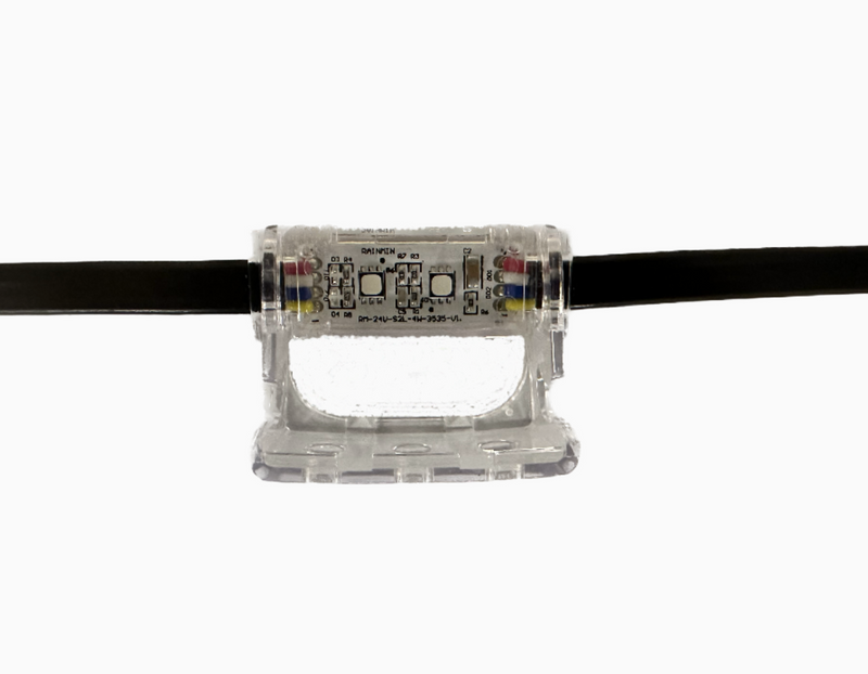 These clips are designed to hold 4 wire Minleon permanent lighting pebbles.  They can attach to a flat surface in place of track, and hold a pebble at any angle desired.  The pebble comes with permanent bonding 2-sided sticky tape.  The tape can be applied all the way down to 32ºF, and withstands temperatures up to 300ºF.