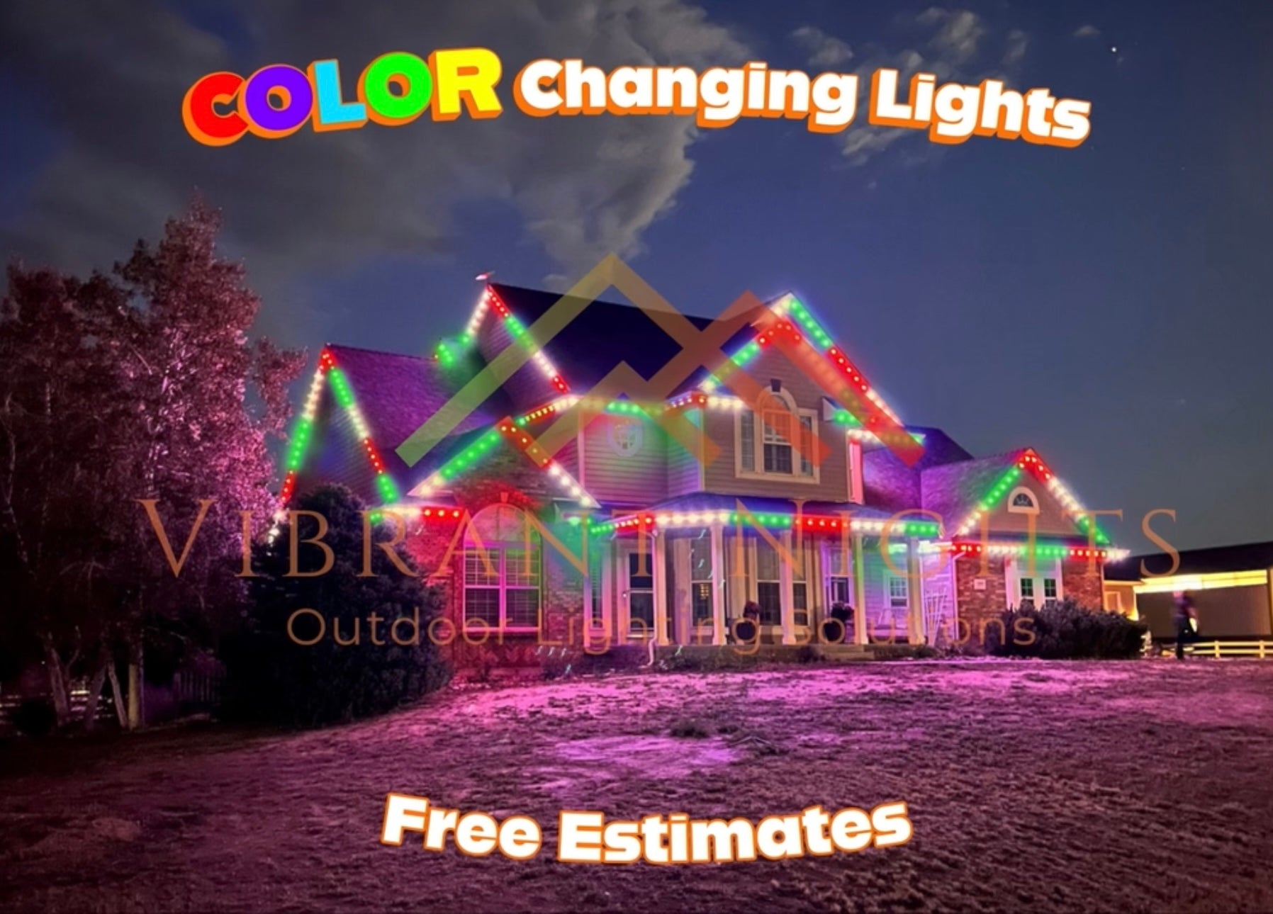 Motion Post Cards branded for Vibrant Nights to help you educate customers on what permanent lighting is capable of.  These cards will change as you move the card to relay color changing and motion.  They are much thicker, a different material, and absolutely grab an indescribable increase in attention compared to traditional mailers.