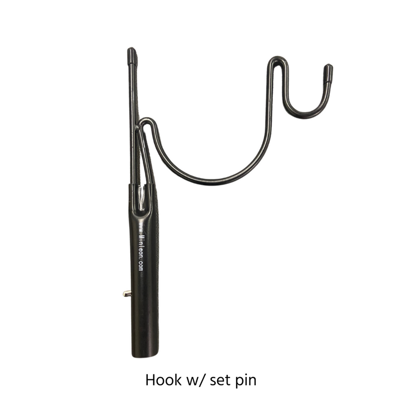 NOTE: The hook with the set pin is compatible with the carbon fiber telescopic pole while the hook with the set screw is compatible with the Mr. Longarm painter's pole.