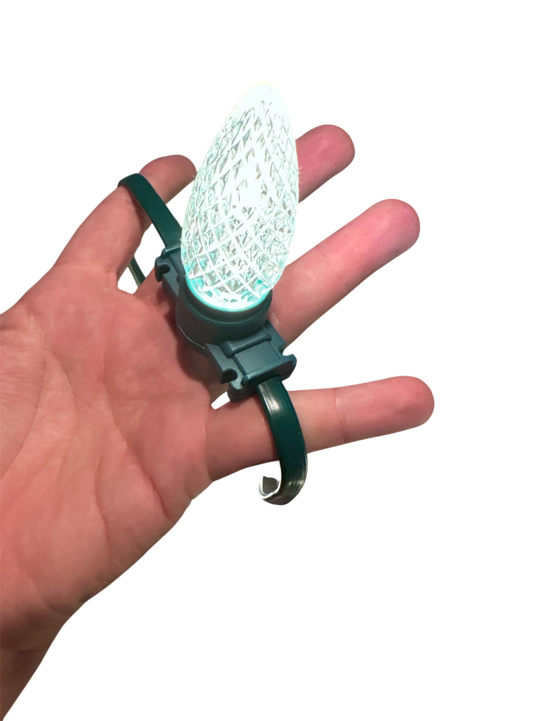 Revolutionary C9 RGBW 3 diode bulbs.  Everything is made with the highest quality components in mind.  The shells are polycarbonate, so they don't discolor or etch over time.  The wire and base are green to look like standard temporary Christmas lighting.  Designed to last 10 years if installed year-round for 365 days a year.