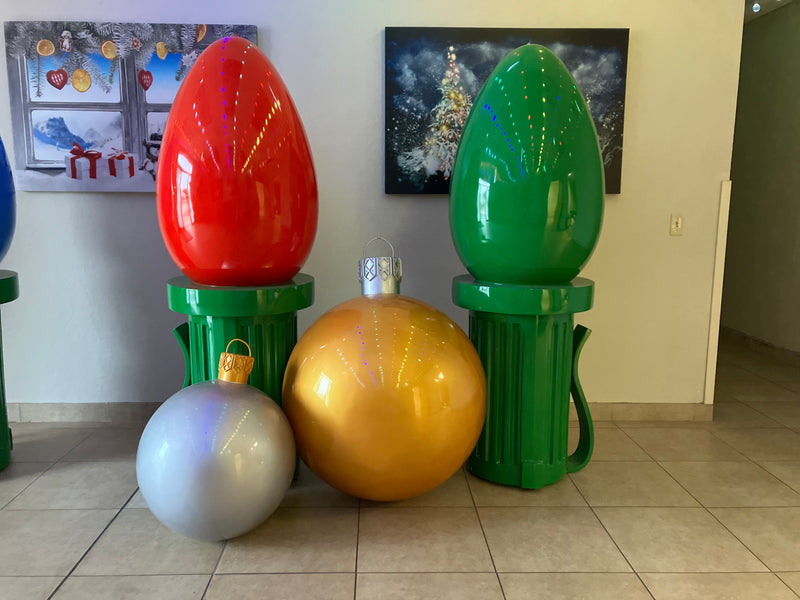 Get into the holiday spirit with our Giant Christmas Bulb! Standing at 7 feet tall, it's the perfect addition to any large commercial display. Show off your festive spirit and spread joy this holiday season. Available in Red, Blue, Yellow, and Green.